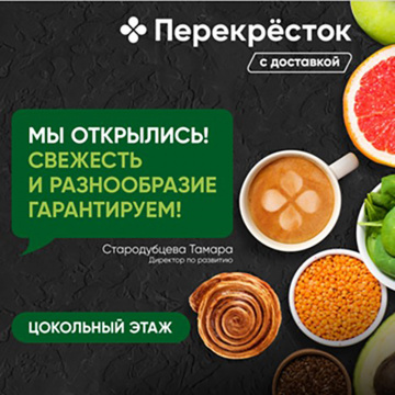 Местных жителей ожидает широкий ассортимент продуктов: свежая рыба и мясо, большой выбор овощей-фруктов, а также готовой еды, товаров первой необходимости, собственных торговых марок сети, а также кафе «Select» с горячими напитками, выпечкой, блюдами для завтрака, обеда и перекуса в ассортименте. Ждем всех в обновленном супермаркете «ПЕРЕКРЕСТОК»